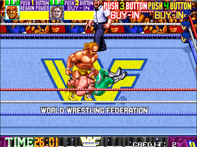 WWF classic game, the sequel to WWF Superstars. Fight in the Royal Rumble mode or Saturday Night’s Main Event.