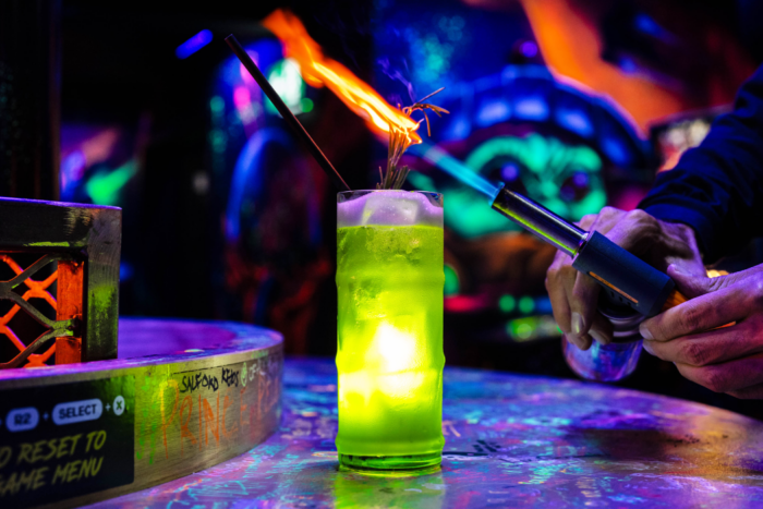 GTA Spice CityCherryVaniaSub-Zero SodaJurassic Marg - veLake Springfield - vMars Attack - vToadette's TipplePeach On The Beach - veAku Aku Fruit Punch - veMad Max 2.0Powerstar Martini - veKong Island Iced Tea - veQuick Revive No.5 - veHits From the Pong - non-alcoholicNo Uka Uka -