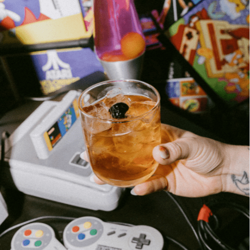 GTA Spice CityCherryVaniaSub-Zero SodaJurassic Marg - veLake Springfield - vMars Attack - vToadette's TipplePeach On The Beach - veAku Aku Fruit Punch - veMad Max 2.0Powerstar Martini - veKong Island Iced Tea - veQuick Revive No.5 - veHits From the Pong - non-alcoholicNo Uka Uka -